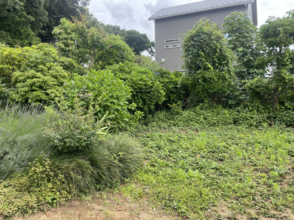 雑草で覆われたお庭を整地