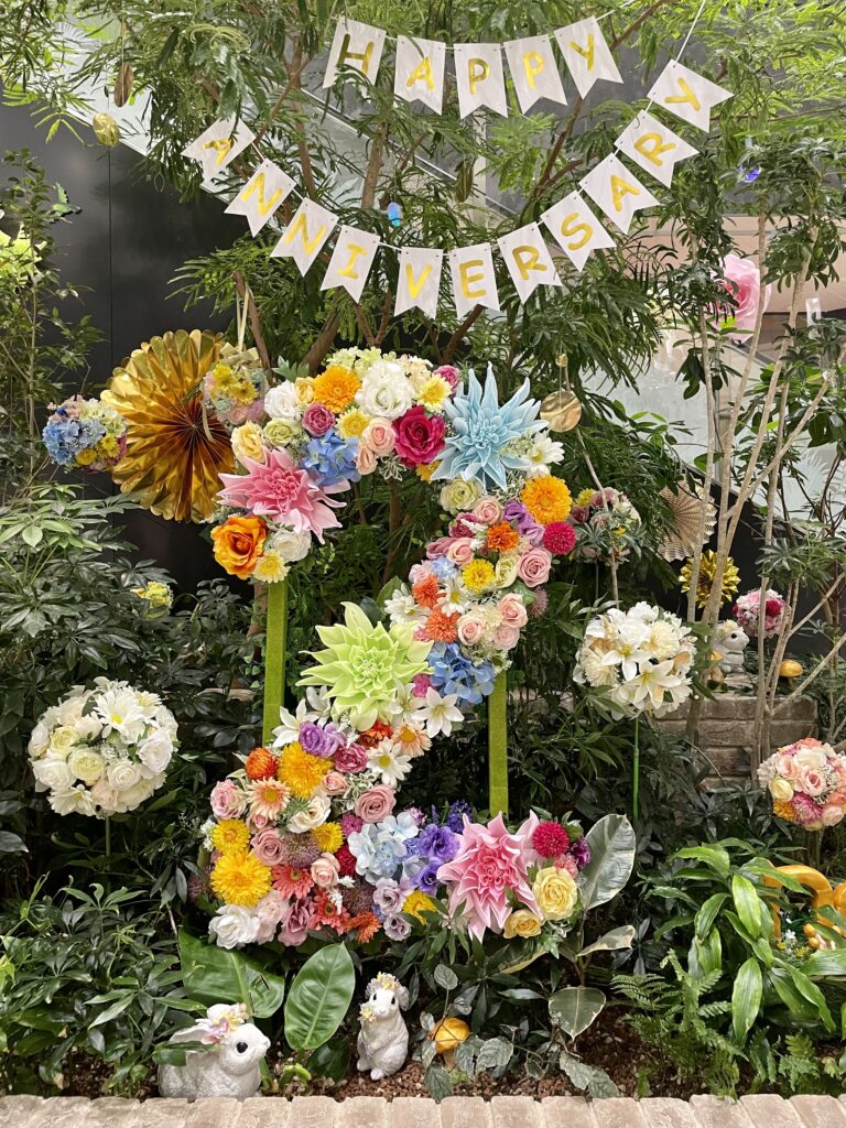 お花で大きく2周年の「2」に描き、2周年を華やかに彩りました。